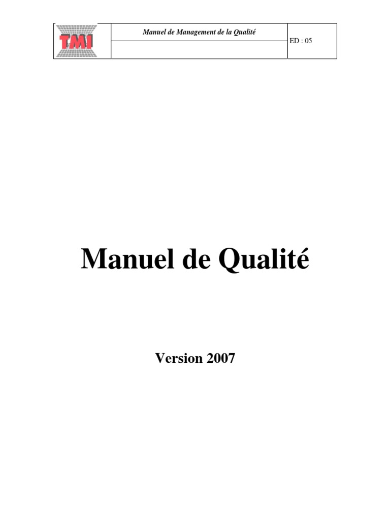 Exemple De Manuel Qualité. La conformit des dispositifs de formation en rfrence aux textes rglementaires documents similar to 15 exemple de manuel qualite. Manuel qualité engagement de la direction : La mise à jour du manuel passe en général par un goulot d'étranglement qui ne favorise pas la formalisation des évolutions. 3.1 organigramme 3.2 textes fondamentaux 4. Beaucoup d'entreprises disposent encore d'un manuel qualité de plusieurs dizaines de pages, très lourd et difficile à lire et surtout comprendre, conséquence du manque de compréhension. Il donne une description générale du système ydécider des éléments du système qualité qui s'appliquent en fonction de la norme modèle (exemples: